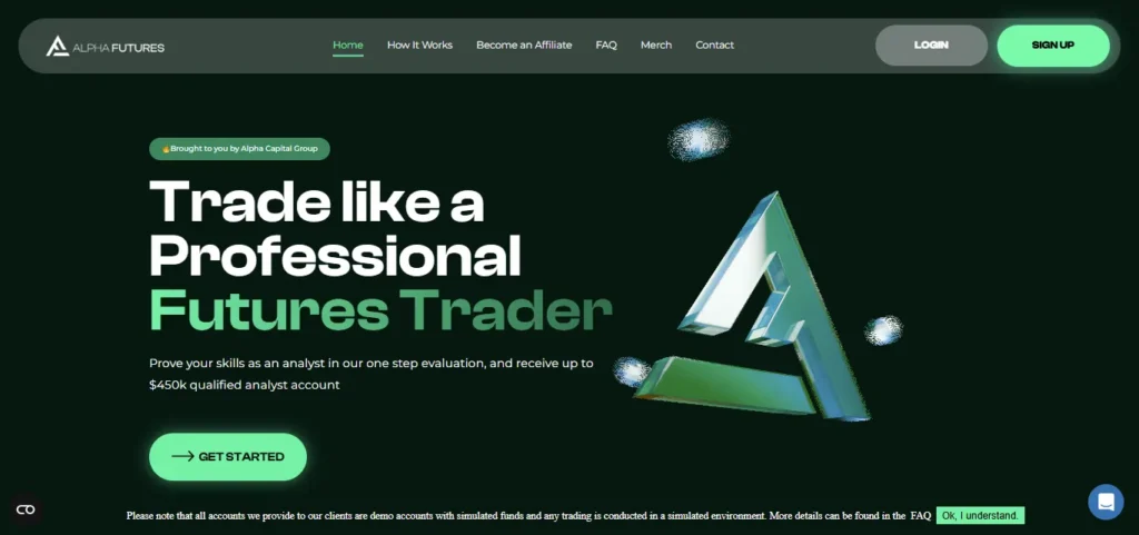- Visit the Website: Go to alpha-futures.com and log in to your account or create one.